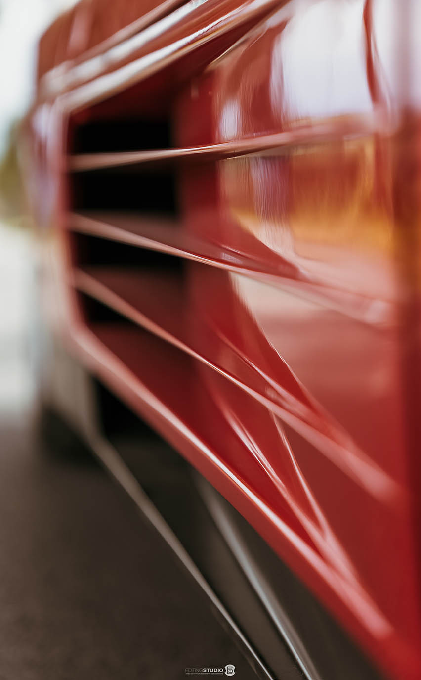 La sigla TB e TS, si riferisce proprio a questo elemento di caratterizzazione, infatti TB si riferisce a Trasversale Berlinetta, invece TS sta per Trasversale Spider, negli anni successivi compare la versione spider con la classica capote in tela. Poi è venuto il turno di altre varianti: GTB, GTS, Challenge e Competizione. La Ferrari 348 sposa un approccio stilistico chiaramente ispirato a quello della Testarossa, di cui è una specie di interpretazione in scala, per questo viene anche nominata la “piccola Testarossa”. A darne la somiglianza sono proprio le vistose lamelle delle fiancate che ricoprono le prese d’aria. Il design, firmato Pininfarina, è dovuto all’estro creativo di Leonardo Fioravanti. A distanza di 30 anni dal suo debutto in società, la Ferrari 348 è ancora affascinante, con le sue linee molto piacevoli e le melodie preziose del suo motore.