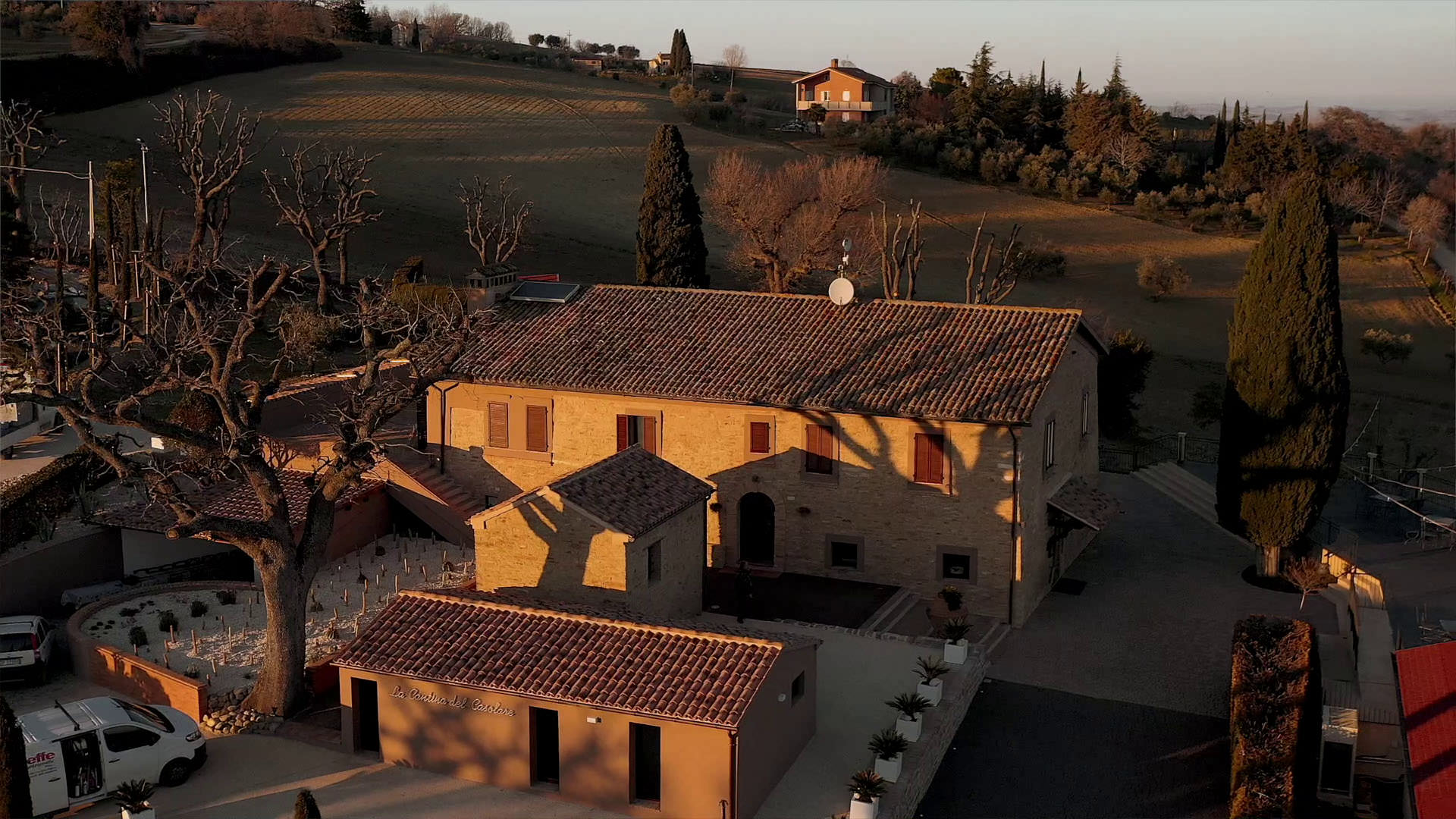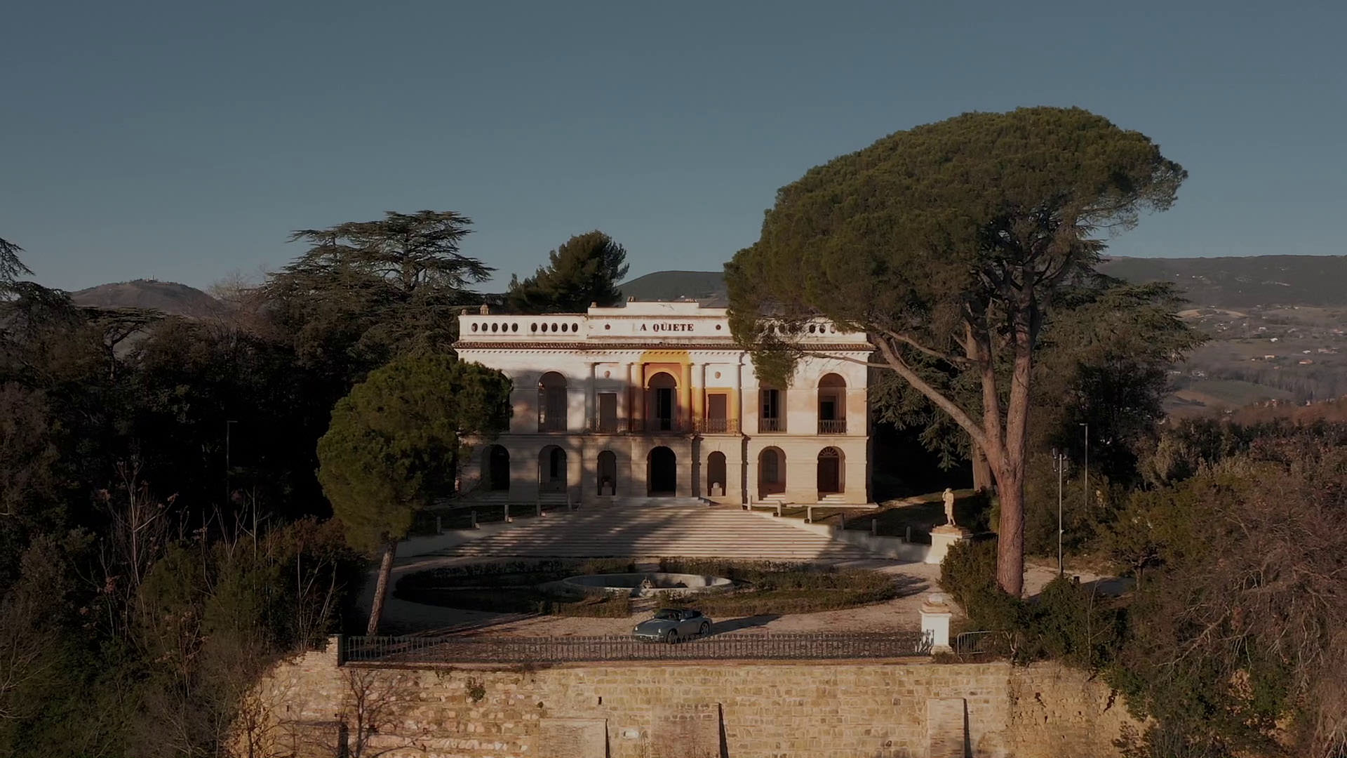 Uscendo dal centro abitato abbiamo avuto il piacere di visitare Villa La Quiete, meglio conosciuta come Villa Spada, un monumento tra i più rilevanti dell’Ottocento italiano ed una delle più belle ville delle Marche. Sorge su di un’altura del comune di Treia, dal loggiato del piano nobile domina la vallata del fiume Potenza, fino a scoprire il mare Adriatico a 30 km di distanza. La splendida villa neoclassica, opera di Giuseppe Valadier, è immersa in un parco di circa 3 ettari, completamente cinto da mura e con al suo interno giardini all’italiana, orti, ampie zone boscate e magnifici alberi secolari. Abbiamo visitato la villa in occasione delle riprese del video, in una splendida giornata invernale.